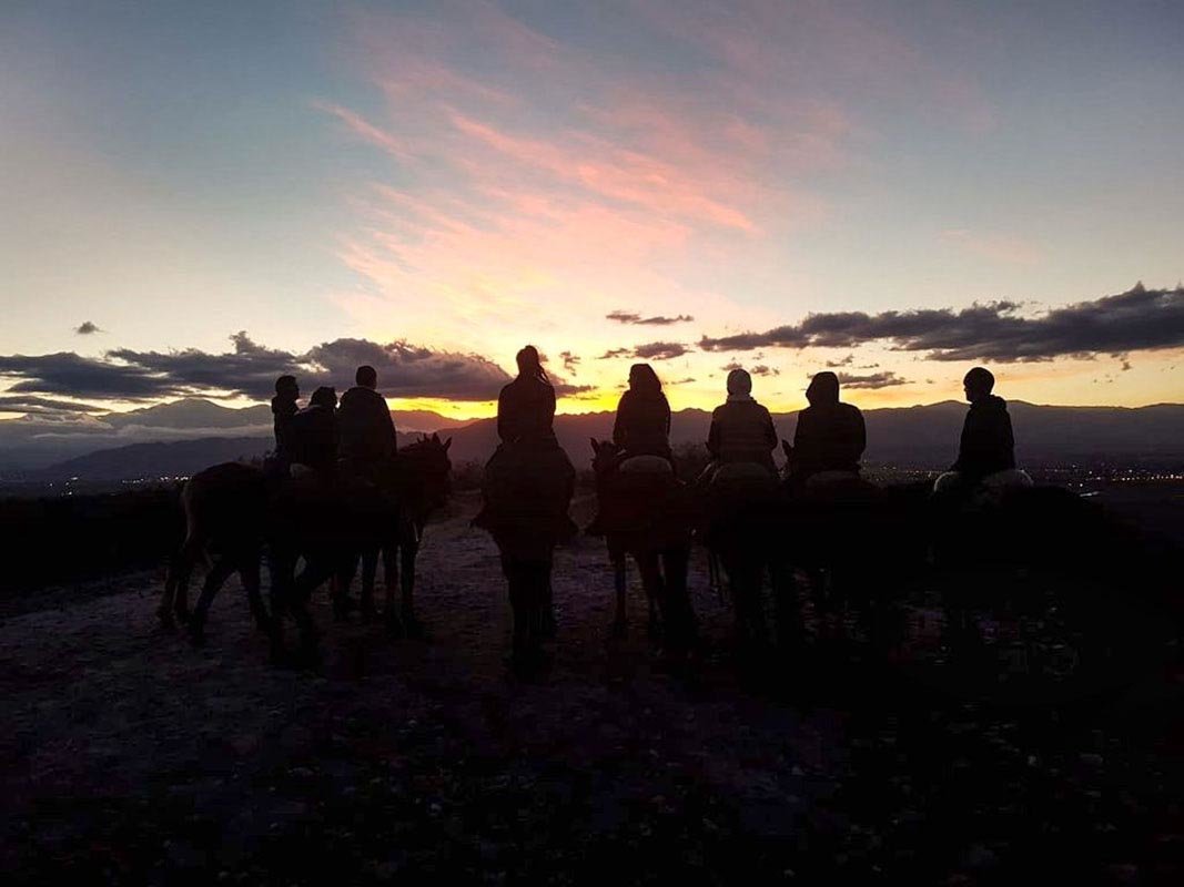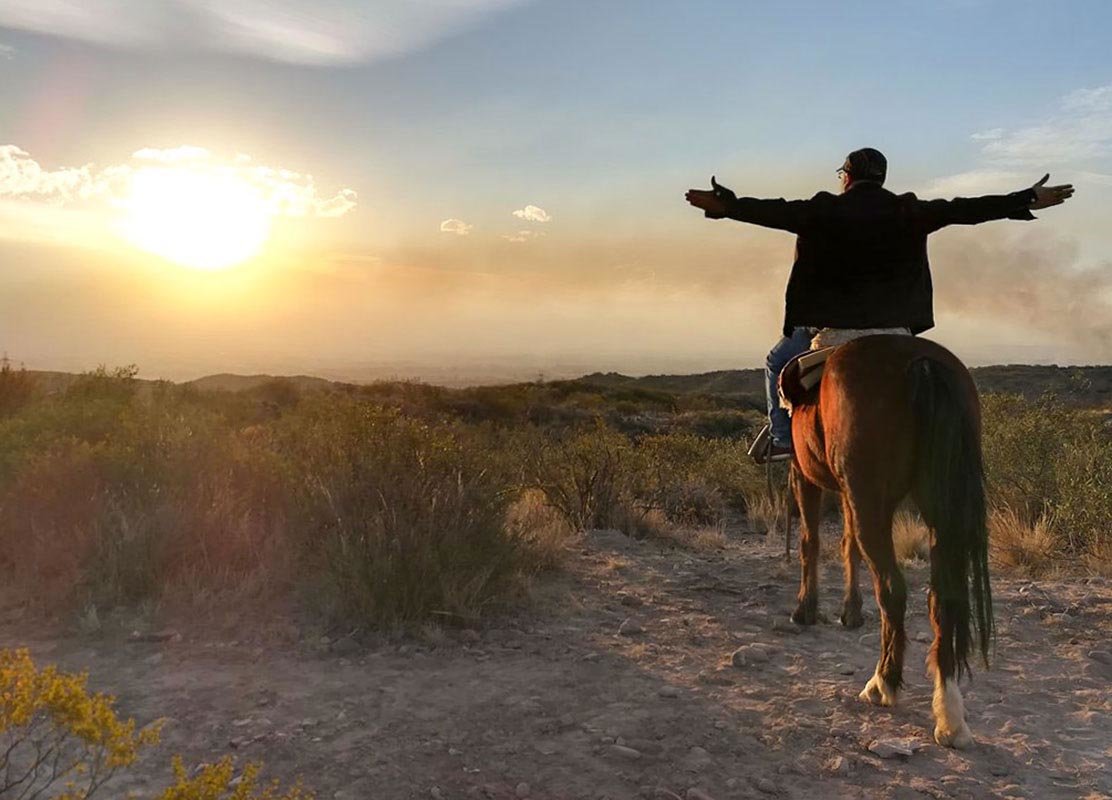 Get ready to saddle up and head out to explore the scenic countryside while taking in the lovely views of the sunset behind the Andes Mountain range.